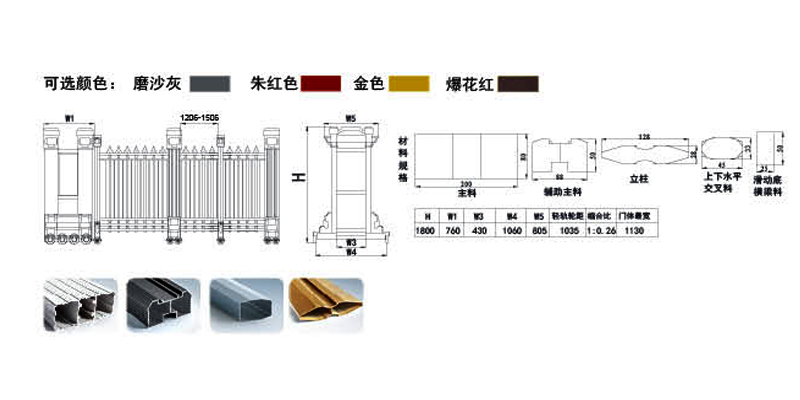 磨砂灰、朱紅色、金色、爆花紅